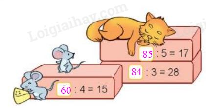 Quan sát ví dụ mẫu rồi tính nhẩm phép chia số tròn chục cho một số.