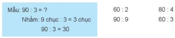 Quan sát ví dụ mẫu rồi tính nhẩm phép chia số tròn chục cho một số.