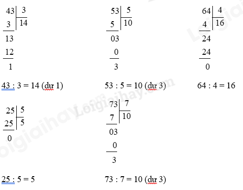 Thực hiện phép chia rồi kết luận các phép chia có số dư là 3.