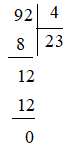 Kết quả của phép chia 92 : 4 là