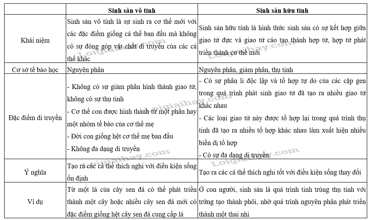 CH 1: Cho biết sự khác nhau giữa hai hình thức sinh sản vô tính và sinh sản hữu tính.