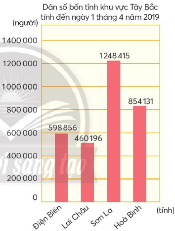 Số liệu về dân số của một số tỉnh vùng Tây Bắc được thể hiện trong biểu đồ bên.