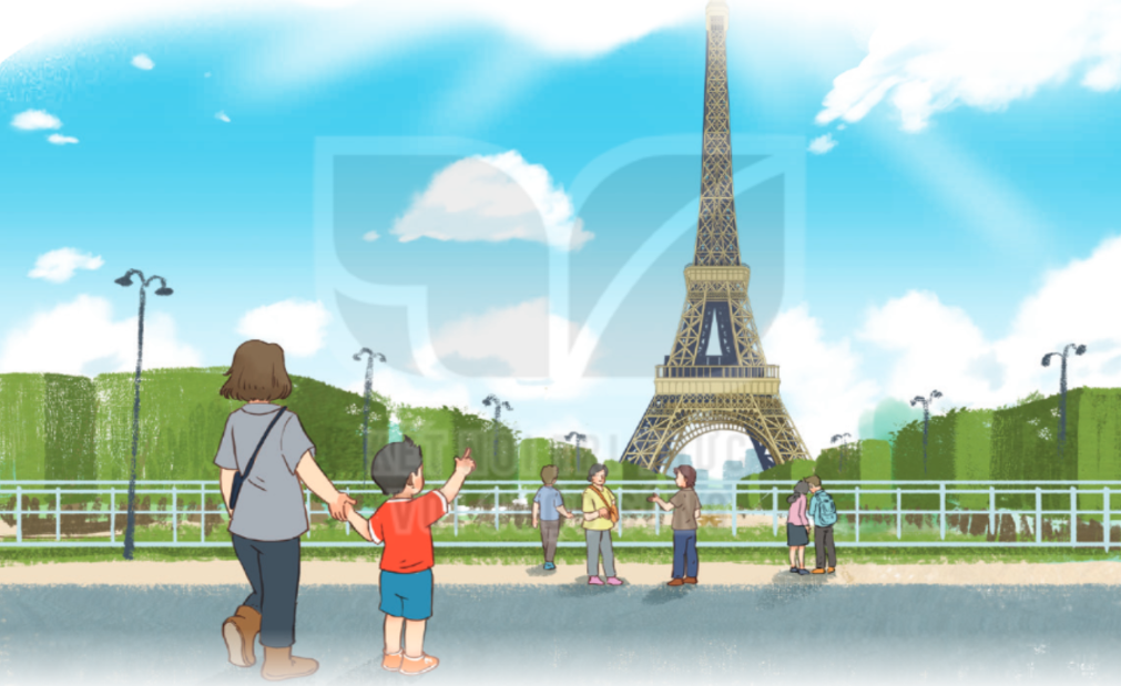 Dương được ba mẹ cho đi du lịch ở Pa-ri, thủ đô nước Pháp. Dương ấn tượng nhất với tháp Ép-phen.