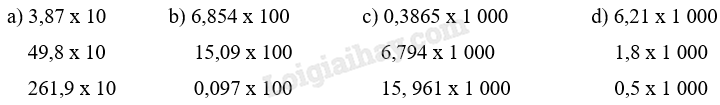 Muốn nhân một số thập phân với 10, 100, 1 000, … ta chỉ việc chuyển dấu phẩy của số đó lần lượt sang phải một, hai, ba, … chữ số.