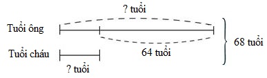 Hiện nay tổng số tuổi của hai ông cháu là $68$ tuổi. Biết rằng \(5\) năm nữa cháu kém ông \(64\) tuổi. Tính tuổi của mỗi người hiện nay.
