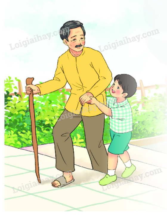 Khi thấy ông đau, để giúp ông, Việt đã để ông vịn vào vai mình rồi đỡ ông đứng lên.