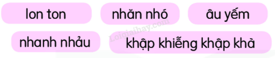 Những từ ngữ thể hiện dáng vẻ của Việt là: lon ton, âu yếm, nhanh nhảu