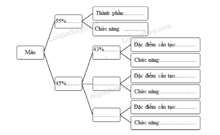 Hãy tóm tắt đặc điểm cấu tạo, chức năng của máu theo sơ đồ dưới đây.