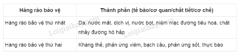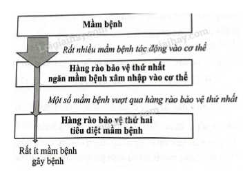 Sơ đồ dưới đây thể hiện các hàng rào bảo vệ của cơ thể chống lại mầm bệnh (virus, vi khuẩn, nấm, kí sinh trùng).
