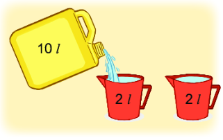 b) Rót đầy hai ca từ một can chứa đầy nước.