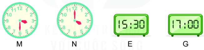 a) Dựa vào số chỉ kim giờ và kim phút để đọc giờ trên mỗi đồng hồ M và N, từ đó tìm được hai đồng hồ chỉ cùng giờ vào buổi chiều.