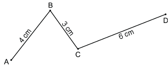 b) Độ dài đường gấp khúc ABCD bằng tổng độ dài các đoạn thẳng AB, BC và CD.