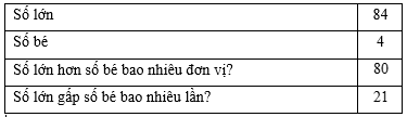 Số cần điền vào chỗ trống lần lượt là $80;21$.