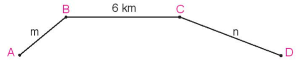 a) Với m = 4 km, n = 7 km thì độ dài quãng đường ABCD là m + 6 + n = 4 + 6 + 7 = 17 (km)