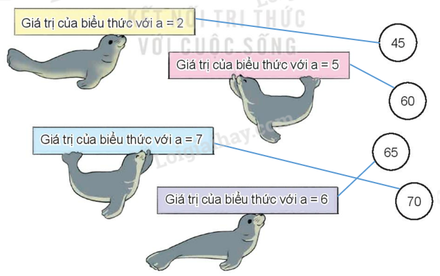 Chọn giá trị của biểu thức 35 + 5 x a trong mỗi trường hợp sau.