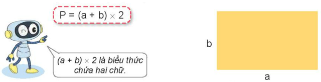 Chu vi P của hình chữ nhật có chiều dài a, chiều rộng b (cùng đơn vị đo) được tính theo công thức: