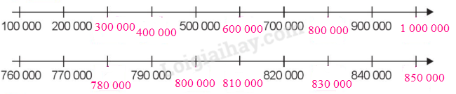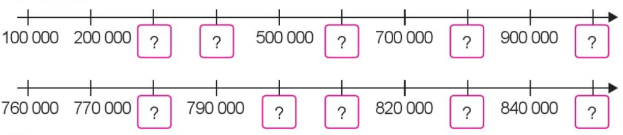 – Tia số thứ nhất: Đếm thêm 100 000 rồi viết số thích hợp vào ô trống.