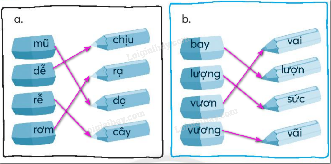 Em đọc kĩ các tiếng và nối để ghép thành từ phù hợp.