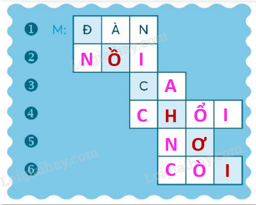 Em đọc kĩ các gợi ý và quan sát ô chữ để điền từ thích hợp.