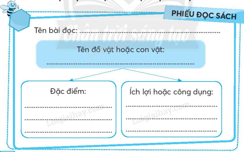 Viết vào Phiếu đọc sách những điều em đã chia sẻ với bạn sau khi đọc một bài đọc về đồ vật hoặc con vật.