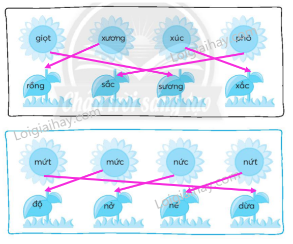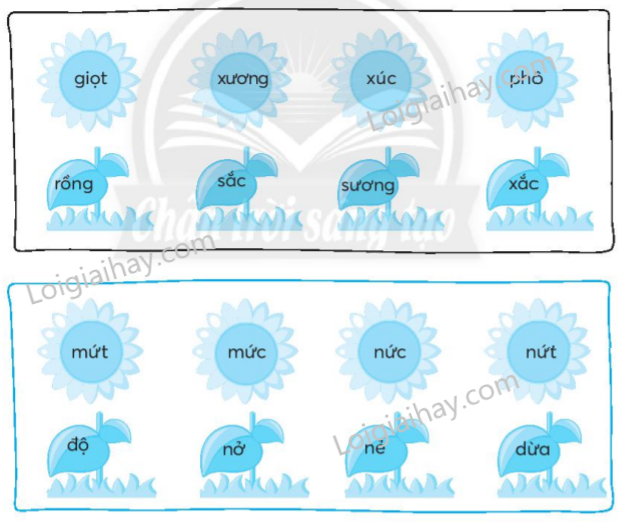 Em đọc kĩ các tiếng bên trong mỗi hình bông hoa và chiếc lá để nối thành từ ngữ đúng.