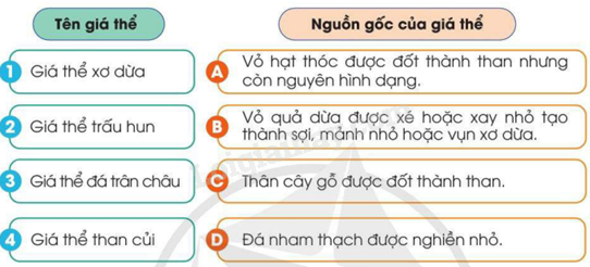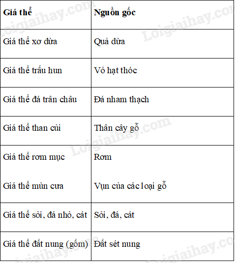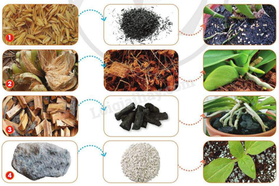 Hãy ghép tên với nguồn gốc của các loại giá thể trồng hoa, cây cảnh dưới đây cho phù hợp.