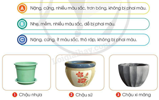Cùng bạn ghép các thẻ mô tả đặc điểm tương ứng với mỗi loại chậu dưới đây.