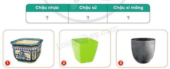 Em hãy nêu đặc điểm của mỗi loại chậu trồng hoa và cây cảnh trong các hình dưới đây.