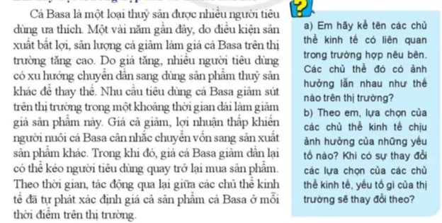 – Hưng: Giá cả thị trường giúp chúng ta nhận biết được tình hình hàng hoá trên thị trường để điều chỉnh chi tiêu. Như những lúc thịt lợn tăng giá, nhà tớ chuyển sang ăn thịt bò, cá, gà,…