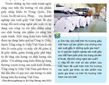 a) Trên thị trường giấy Việt Nam có sản phẩm của những nhà sản xuất giấy ở những quốc gia: Trung Quốc, Đài Loan, In-đô-nê-xi-a, Pháp,…
