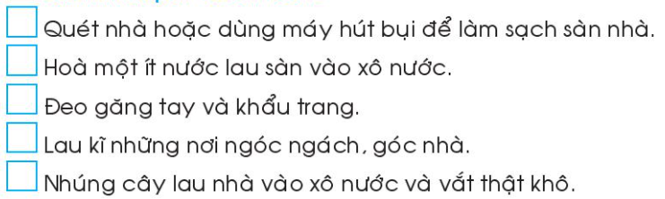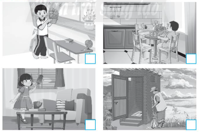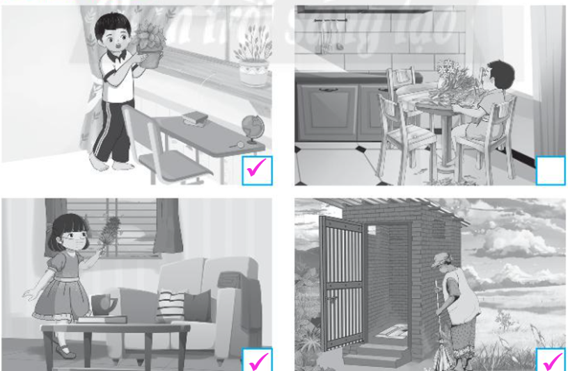 Đánh dấu tích vào □ ở hình chỉ những việc làm đúng giúp giữ sạch nhà ở.