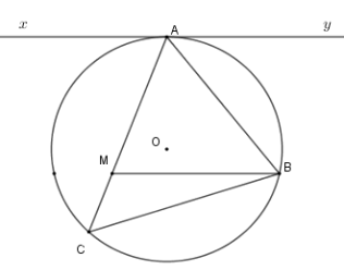 Ta có \(\widehat {MCA} = \widehat {CBA}\) (cùng chắn cung \(AC\))
