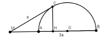 $\begin{array}{l} \Rightarrow M{C^2} = MA.MB\\ \Rightarrow MA = \dfrac{{{a^2}}}{{3a}} = \dfrac{a}{3}\\ \Rightarrow AB = MB – MA = 3a – \dfrac{a}{3} = \dfrac{{8a}}{3}\end{array}$