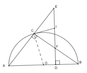 Cho nửa đường tròn $(O)$ đường kính $AB$ và một điểm $C$ trên nửa đường tròn. Gọi $D$ là một điểm trên đường kính $AB$; qua $D$ kẻ đường vuông góc với $AB$ cắt $BC$ tại $F$, cắt $AC$ tại $E$. Tiếp tuyến của nửa đường tròn tại $C$cắt $EF$ tại $I.$Khi đó