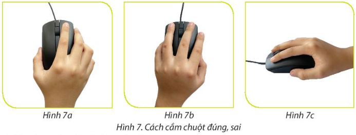+ Hình 7b: cầm chuột bằng tay trái, thứ tự các ngón đặt vào hai nút trái phải đều bị sai.