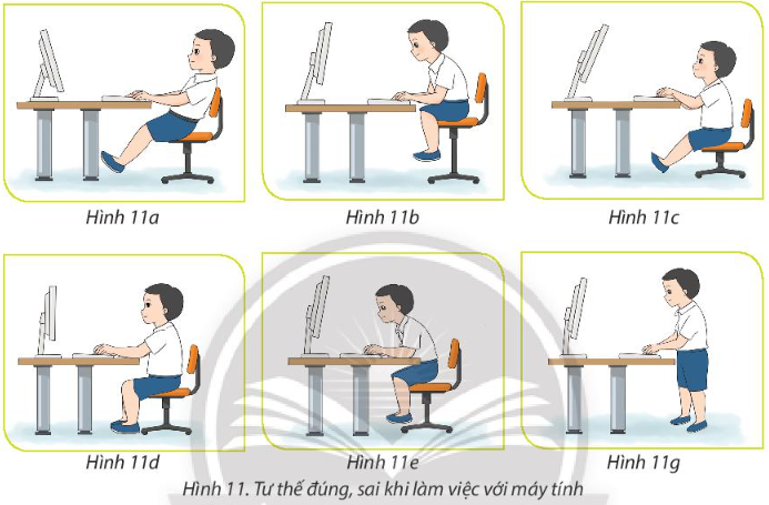 Dựa vào kiến thức đã học về tư thế ngồi làm việc với máy tính và vị trí của màn hình.