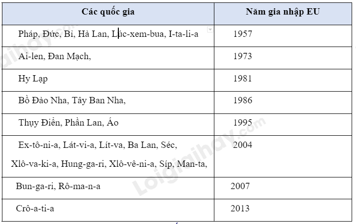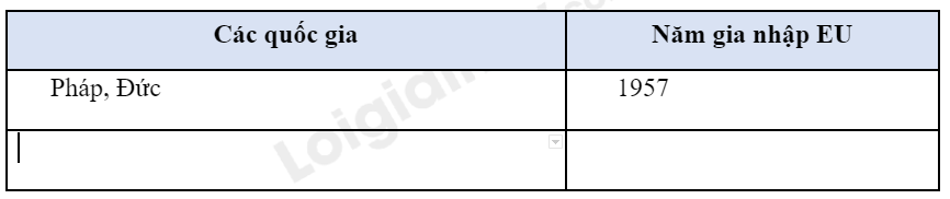 Cho biết các thành viên của EU và năm gia nhập EU bằng cách hoàn thành bảng theo mẫu dưới đây.