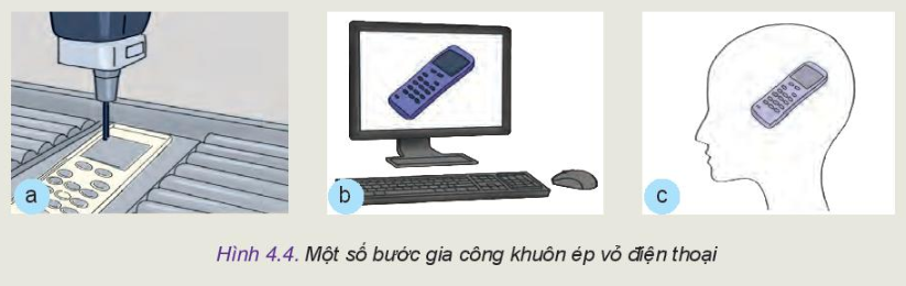 – b ứng với bước 2 sử dụng phần mềm CAD để vẽ mô hình thiết kế vỏ điện thoại trên máy tính