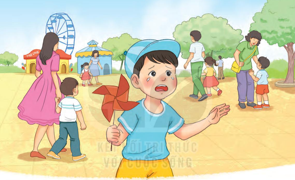 a. Bạn nhỏ đang ở khu vui chơi giải trí. Bạn ấy khóc vì bị lạc mất bố mẹ.