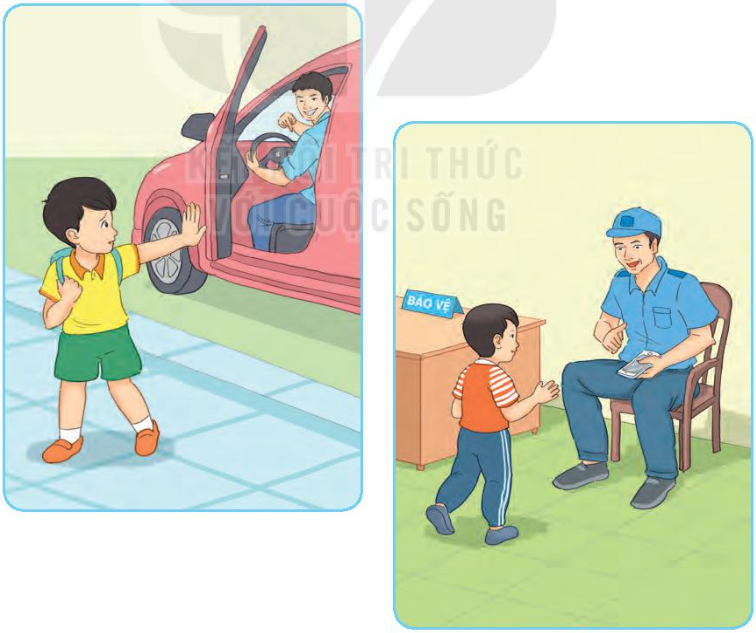 Quan sát tranh và dùng từ ngữ trong khung để nói: Nếu chẳng may bị lạc, em sẽ làm gì?