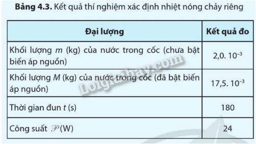 Với số liệu như trong Bảng 4.3 thì nhiệt lượng đã cung cấp cho nước đá là