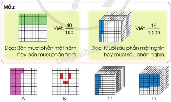 a) Viết phân số chỉ số phần đã tô màu trong mỗi hình rồi đọc (theo mẫu):