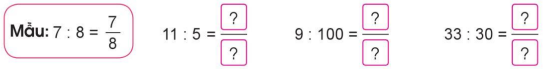 b) Viết thương của mỗi phép chia sau dưới dạng phân số (theo mẫu):