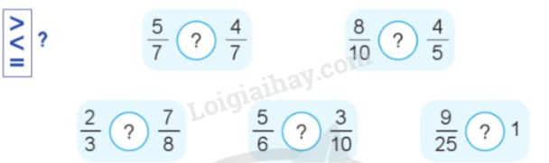 – Muốn so sánh hai phân số khác mẫu số, ta quy đồng mẫu số hai phân số rồi so sánh hai phân số sau khi quy đồng