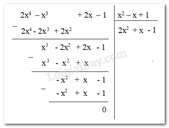 Phép chia 2x4 – x3 + 2x – 1 cho x2 – x + 1 có thương là: