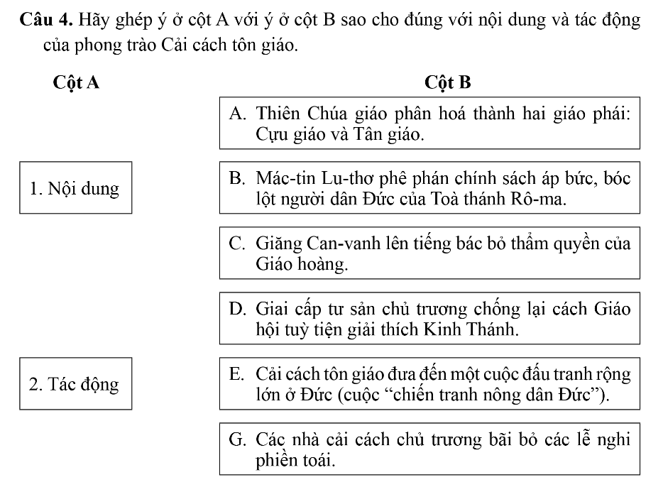 Câu 2. Một trong những tác động của các cuộc Cải cách tôn giáo ở Tây Âu là