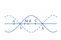 Khoảng cách từ M tới điểm nút I1 là: \(M{I_1} = MA – {I_1}A = \frac{{AC}}{2} – {I_1}A = \frac{\lambda }{4} – \frac{\lambda }{6} = \frac{\lambda }{{12}}\)