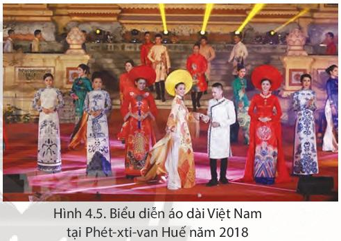 B3: Quan sát hình 4.5 qua đó ta thấy được trang phục áo dài truyền thống và bối cảnh ở Cố đô Huế trong Festival Huế 2018.