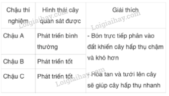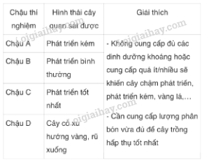 4. Bài 4. Thực hành: Thí nghiệm chứng minh tác dụng của phân bón đối với sinh trưởng, phát triển và năng suất cây trồng