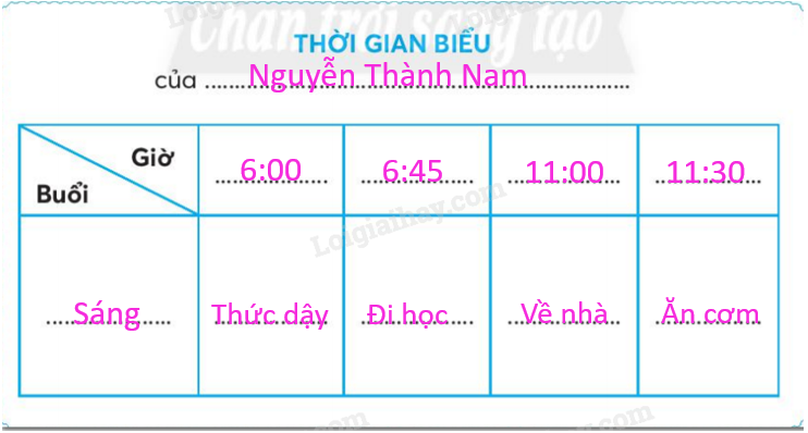 Lập thời gian biểu một buổi trong ngày của em. Trang trí thời gian biểu.